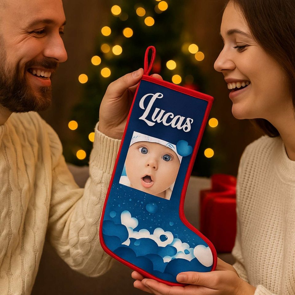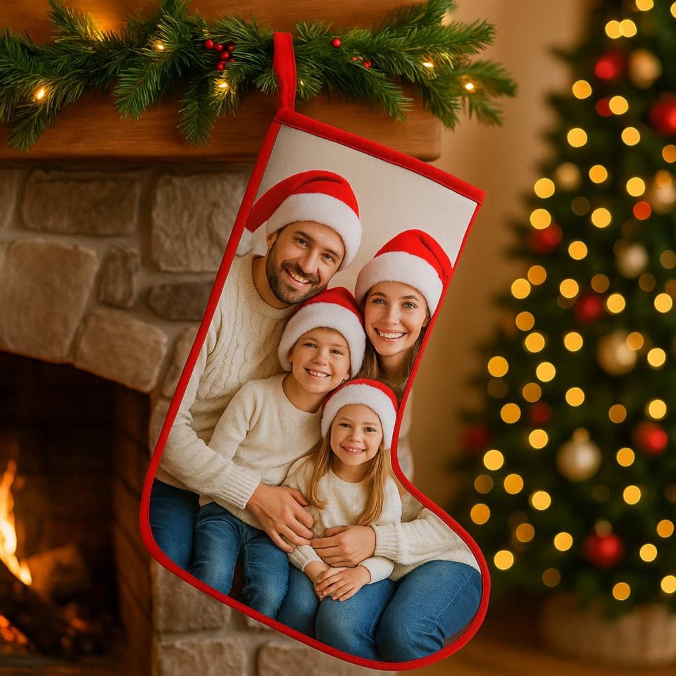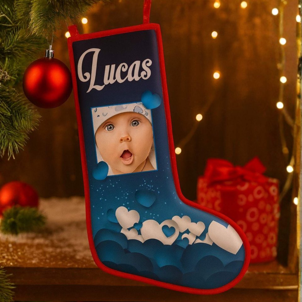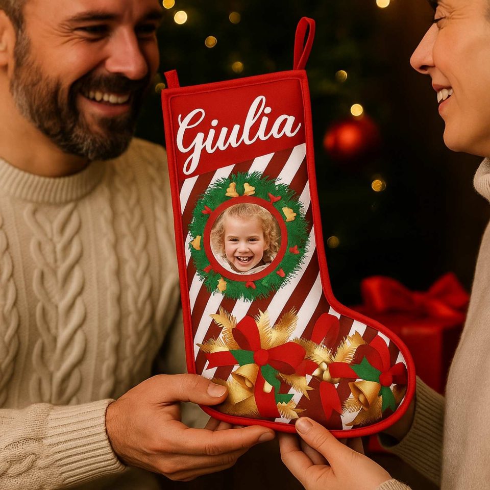 Calza Personalizzata della befana Ghirlanda con Nome e Foto per Natale ed Epifania