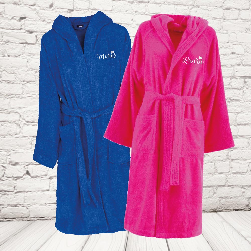 Accappatoi personalizzati per coppia con Nome ricamato – Accappatoio in spugna cotone con cappuccio – Idea Regalo per lui e lei Amore Love Anniversario Fidanzati