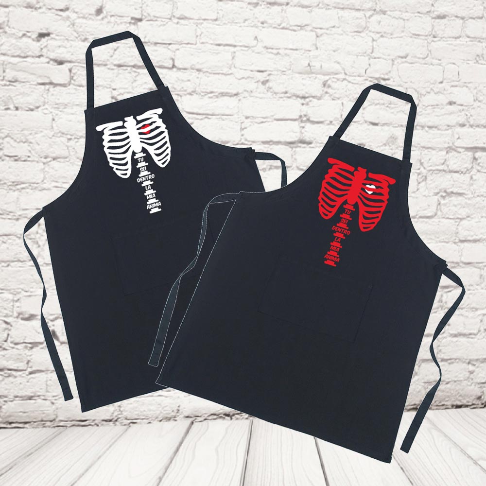 Coppia Grembiuli da Cucina Neri o Bianchi – Idea Regalo con grafica Divertente per lui e lei Amore Love Anniversario Fidanzati ”DENTRO L’ANIMA”