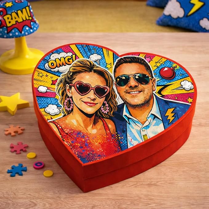Scatola regalo a forma di cuore rossa grande personalizzata POP ART con Foto Idea Regalo Originale Anniversario per Lei e Lui San Valentino Coppia di Fidanzati Amore Love Romantica