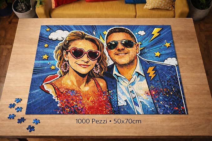Maxi Puzzle Personalizzato con Foto e testo 50×70 cm 1000 pezzi Personalizzato con Foto Idea Regalo Anniversario per Lei e Lui San Valentino Coppia di Fidanzati Amore