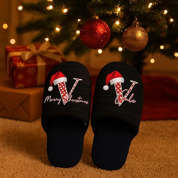Ciabatte Calde Pantofole in Spugna Cotone da Uomo 36-45 Personalizzate con Nome, Idea Regalo Natale Natalizia ”CHRISTMAS LETTER”