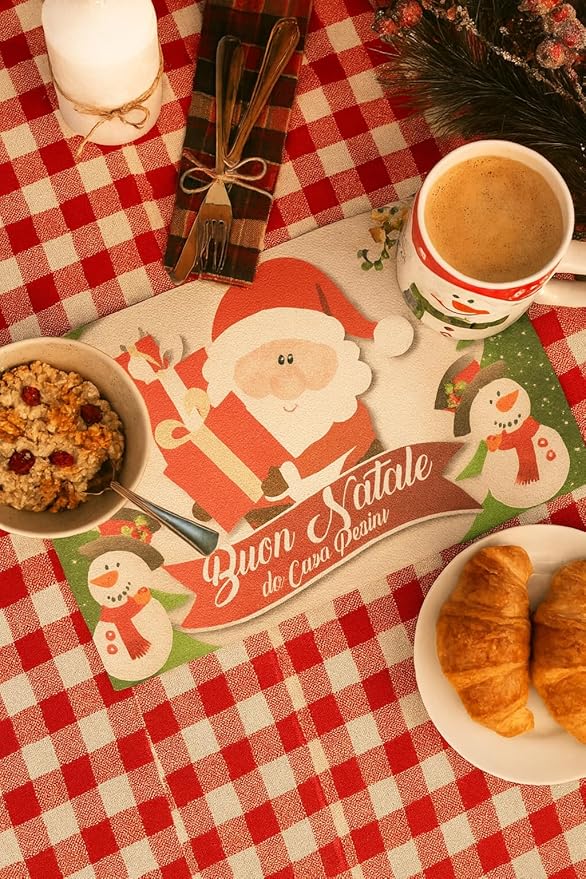 TOVAGLIETTA DECORATIVA AMERICANA IN TESSUTO JUTA PER NATALE PERSONALIZZABILE CON NOME FAMIGLIA – IDEA REGALO NATALIZIA ”BABBO CARTOON”