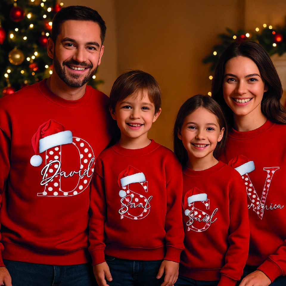Set Tris di Felpe Famiglia Natale Rosse Maglie Natalizie per papà Mamma Bambino Bambina Maglione Personalizzate con Nome Christmas Letter Idea Regalo Famiglia Natale Natalizio Natalizia Calda