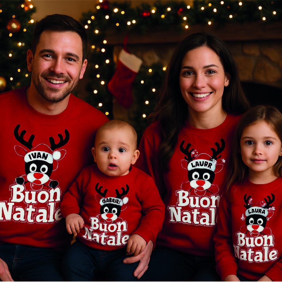 Set Tris di Felpe Famiglia Natale Bianche Maglie Natalizie per papà Mamma Bambino Bambina Maglione Personalizzate con Nome Renne Family Idea Regalo Natale Natalizia