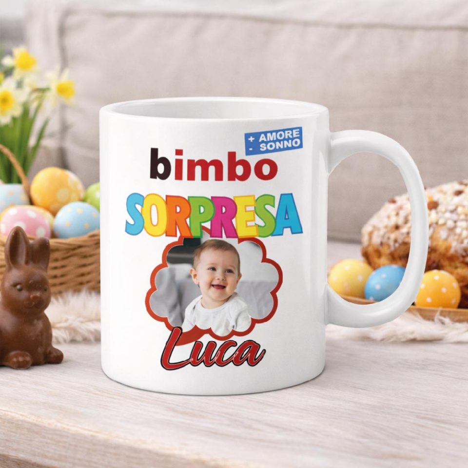 D&Vlab Tazza Mug in Ceramica per Colazione Personalizzata con Nome e Foto in 100% Cotone per Bimbi Idea Regalo Originale per Pasqua porta Cioccolatini
