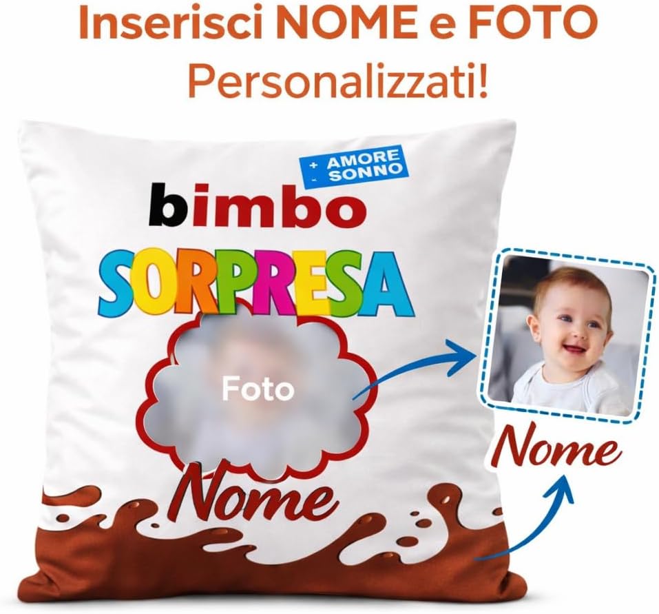 Cuscino in Velluto Quadrato Per Cameretta con Morbida Imbottitura Personalizzato con Nome e Foto in 100% Cotone per Bimbi Idea Regalo Originale per Pasqua