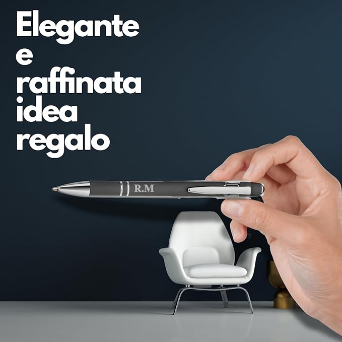 Kit Set 2 Penne a Sfera Personalizzate con Nome Scritte Logo con touch in alluminio + Confezione Regalo, idea regalo personalizzato per laurea, matrimonio, compleanno – Penna Nera Blu e Grigio