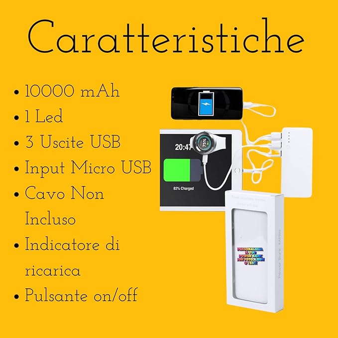 Power Bank 10000 mAh Sottile Leggero Personalizzato con Logo Scritte Powerbank Caricatore Portatile Universale con LED Display USB per iPhone 16 15 14 Pro Max Mini Plus Samsung Huawei iPad Pro Redmi
