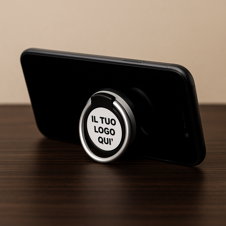 Anello Adesivo per Telefono Cellulare Personalizzabile con Testo Nome Logo, Supporto Telefono Cellulari Rotazione 360° per tutti smartphone e tablet, Gadget Aziendale Pubblicitario