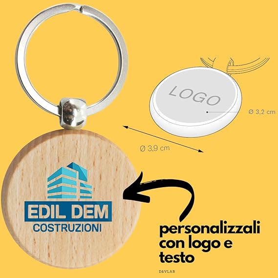 Kit 25pz Portachiavi Rotondi In Legno Ciondolo Tondo Personalizzato Con Logo Testo Stampa a colori – Gadget aziendale Pubblicitario Idea Regalo Natale