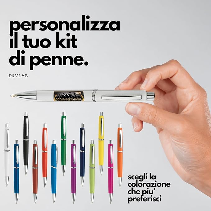 Kit Set Penne Personalizzate con Stampa a Colori, Penna Personalizzata con Scritte Logo Gadget per Pubblicità Promo Aziendale, Lotto da 50, 100 e 200pz Colori Misti