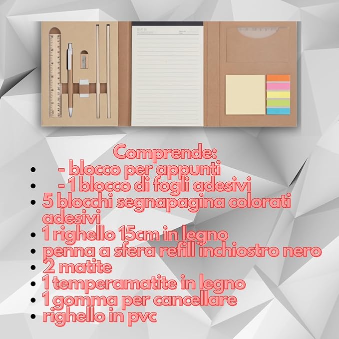 Cartellina Quaderno Blocco Appunti con Penna e Foglietti Adesivi Personalizzabile con Logo e Testo – Blocco Note Premium con Accessori – Gadget aziendale pubblicitario per Scuola e Ufficio