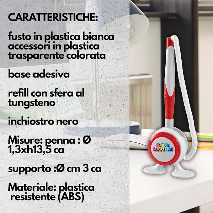 Stiloforo Orientabile con Supporto Spirale per penna a sfera da Scrivania Personalizzato con Logo Nome Scritte in plastica resistente