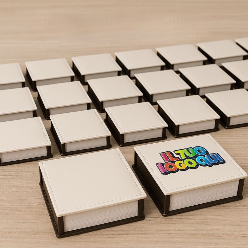 Blocco NOTES CUBE Personalizzato con logo testo, blocco promemoria e dispenser con fogli bianchi Rosso o Blu, Gadget aziendale pubblicitario per scuola ufficio e casa