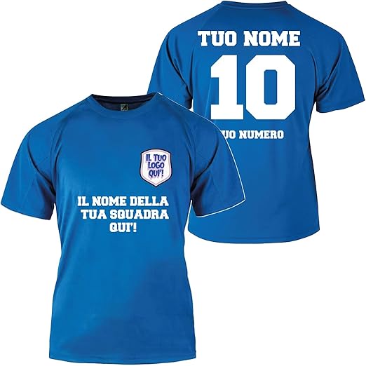 D&Vlab T-Shirt Maglie Magliette Adulti Uomo Donna con Stampa Personalizzata Nome Numero Squadra Logo Maglietta per Sport Calcio Tennis Padel in 100% Poliestere Traspirante Asciugatura Veloce