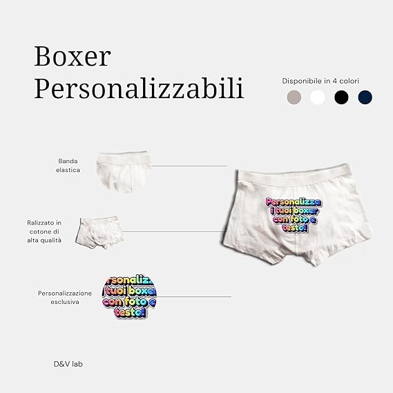 Boxer Uomo in Cotone Personalizzato con Nome Foto Frasi Divertenti – Mutande Personalizzate Idea Regalo per Lui 20 30 40 50 Anni Natale San Valentino Addio al Celibato
