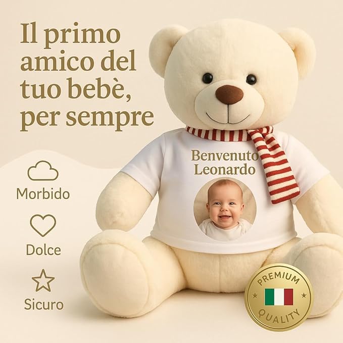 Orsacchiotto gigante grande Peluche Orso Bianco pupazzo bambini morbido Personalizzato con Foto Nome Immagine Scritte – Idea Regalo Natale Compleanno Nascita, Battesimo
