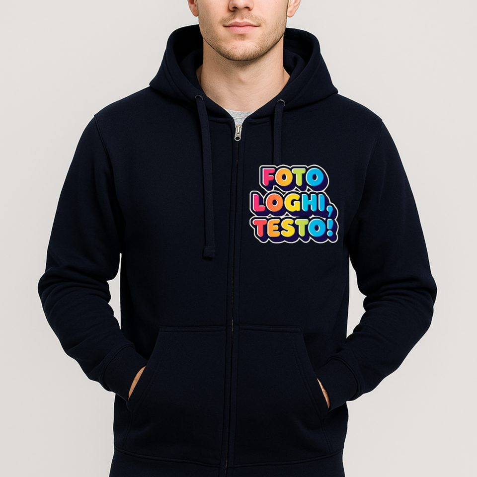 Felpa Uomo Donna con Zip e Cappuccio Tasche Giacca Invernale Aperta Felpata Maglia Tuta Personalizzata Stampa Fronte Retro Logo Foto Testo per palestre Eventi Occasioni