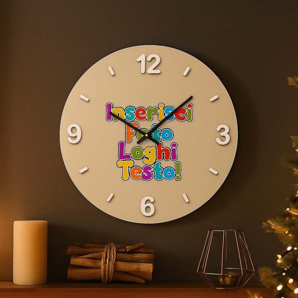 Orologio Tondo da parete a muro per cucina casa soggiorno camera da letto in legno grande moderno Personalizzato con Foto Testo Nomi Idea Regalo Matrimonio Nonni Sposi Lei Lui.