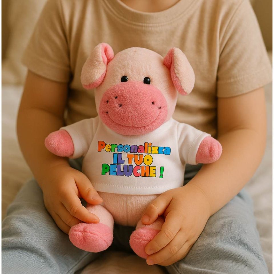 Morbido Peluche Pig Personalizzato con Foto e testo – Pupazzo Maialino con t-shirt bianca personalizzabile – Idea Regalo per San Valentino Natale Festa della Mamma o Papà Compleanno