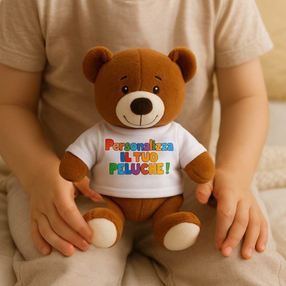Morbido Peluche Orsetto Personalizzato con Foto e testo – Pupazzo Orso con t-shirt bianca personalizzabile – Idea Regalo per San Valentino Natale Festa della Mamma o Papà Compleanno