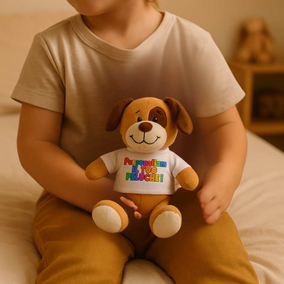 Morbido Peluche Cagnolino Personalizzato con Foto e testo – Pupazzo Cane con t-shirt bianca personalizzabile – Idea Regalo per San Valentino Natale Festa della Mamma o Papà Compleanno