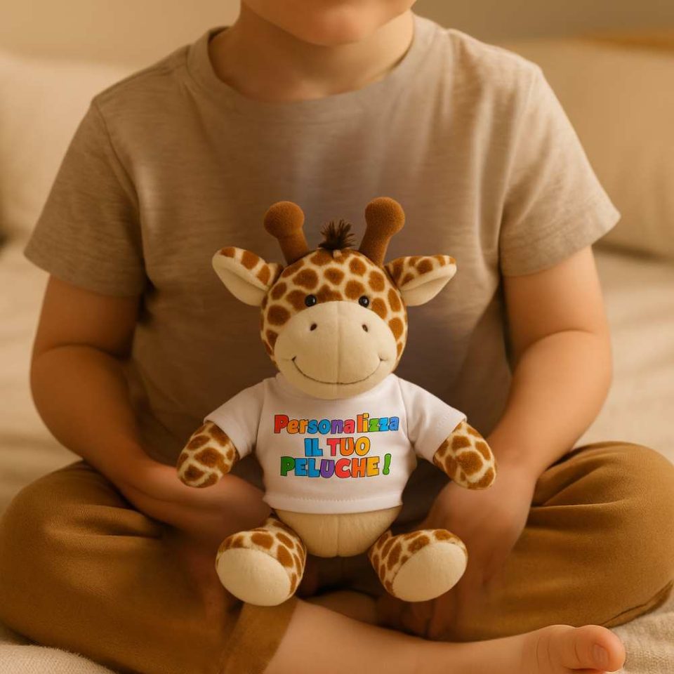 Morbido Peluche Giraffa Personalizzato con Foto e testo – Pupazzo con t-shirt bianca personalizzabile – Idea Regalo per San Valentino Natale Festa della Mamma o Papà Compleanno