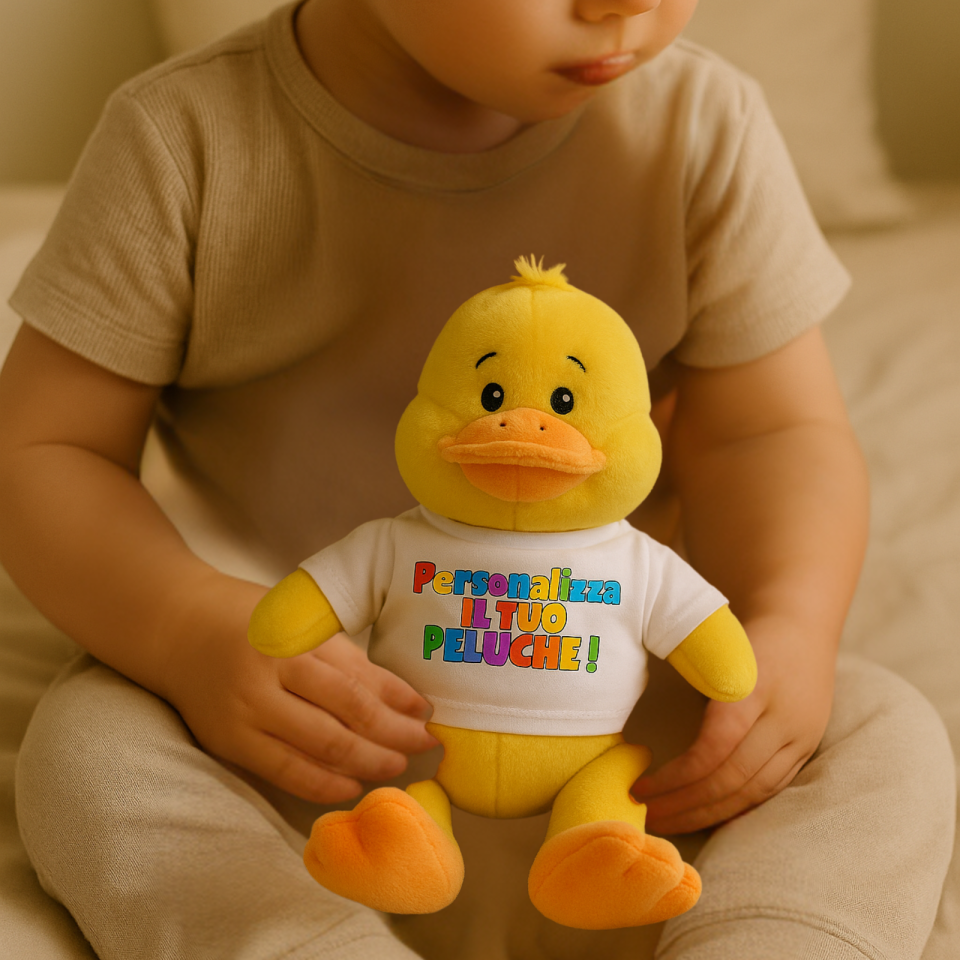 Morbido Peluche Papero Personalizzato con Foto e testo – Pupazzo Paperotto con t-shirt bianca personalizzabile – Idea Regalo per San Valentino Natale Festa della Mamma o Papà Compleanno