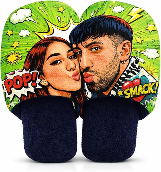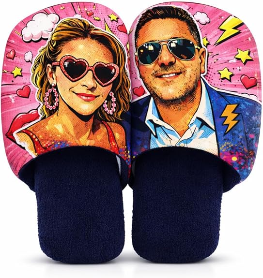 • PERSONALIZZAZIONE UNICA: Pantofole personalizzabili con le tue foto preferite trasformate in stile fumetto pop art colorato, perfette per creare un regalo originale e memorabile