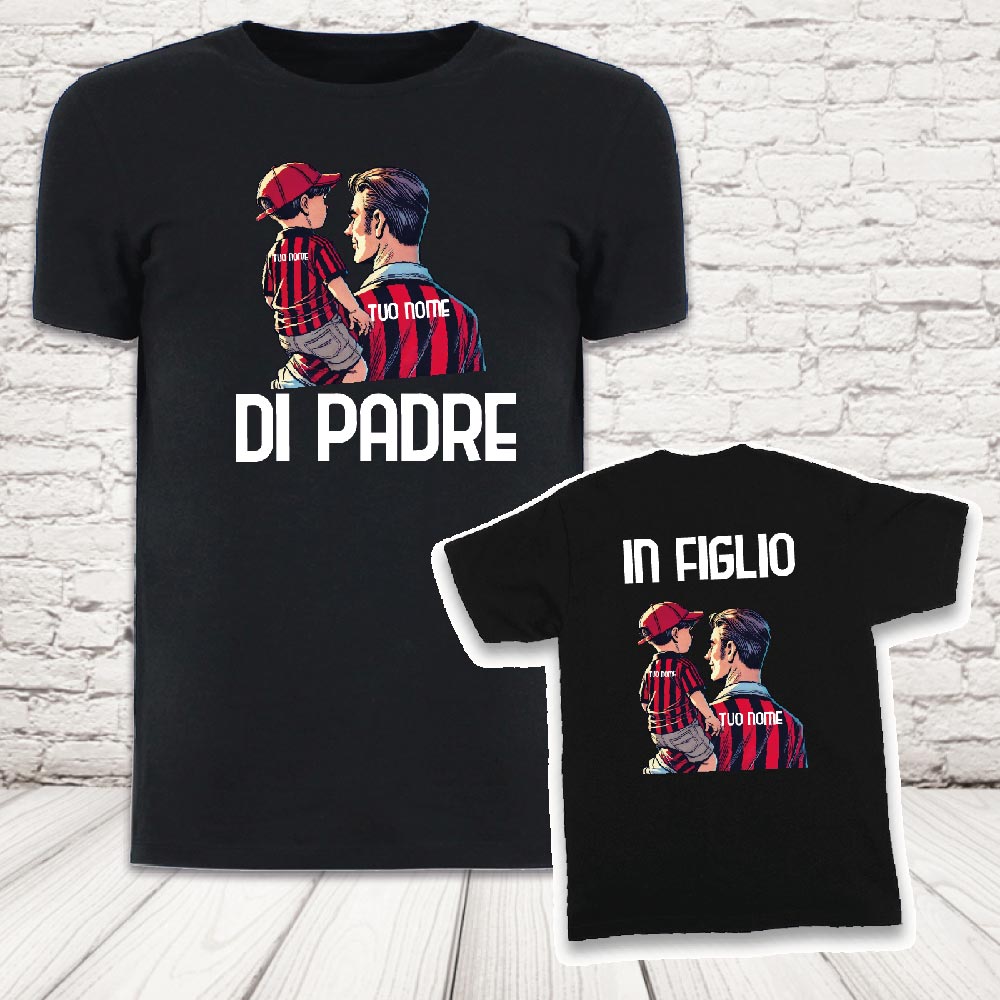 Coppia di T-Shirt MILANISTI Maglie Magliette di Padre in Figlio Idea Regalo per Il papà Squadre ROSSO NERI