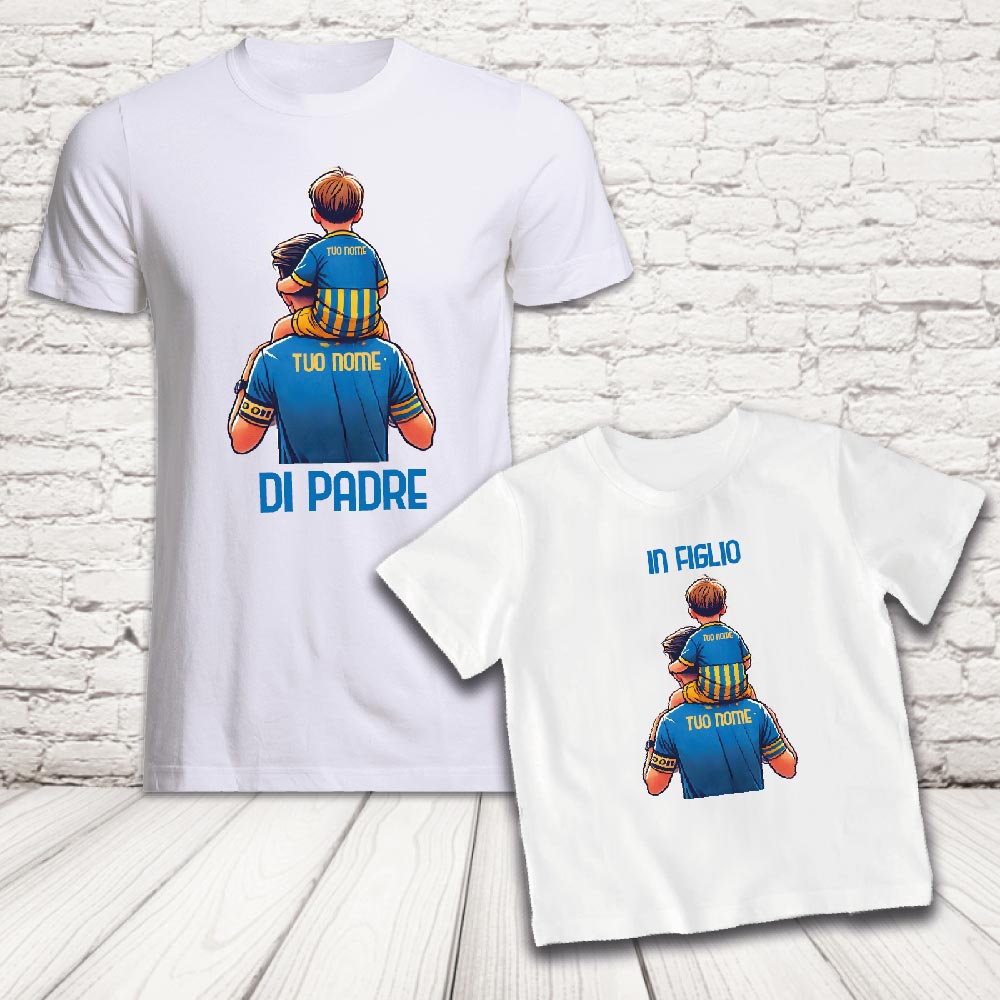 Coppia di T-Shirt VERONESI Maglie Magliette di Padre in Figlio Idea Regalo per Il papà Squadre GIALLO BLU