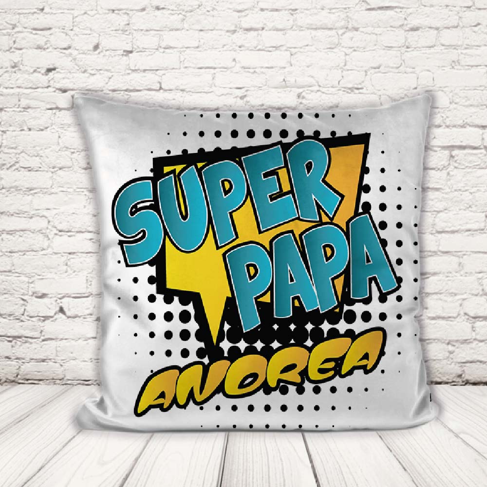 Cuscino Federa 40 x 40 cm con Imbottitura Personalizzato ”DAD COMICS” Con Nome Idea Regalo Festa del Papà Uomo compleanno originale per lui Natale