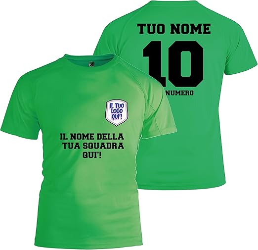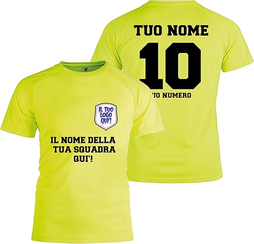 - PERSONALIZZAZIONE: T-shirt sportiva completamente personalizzabile con nome, numero e logo della squadra, disponibile in diversi colori vivaci