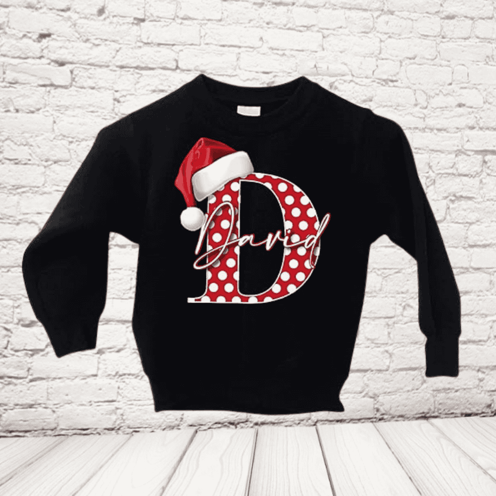 Felpa Maglione Natalizio per Bambini e Ragazzi Nero Bianco Rosso in Caldo Cotone Maglia Natalizia Bimbi Personalizzata con Nome Christmas Letter Idea Regalo Originale e Divertente