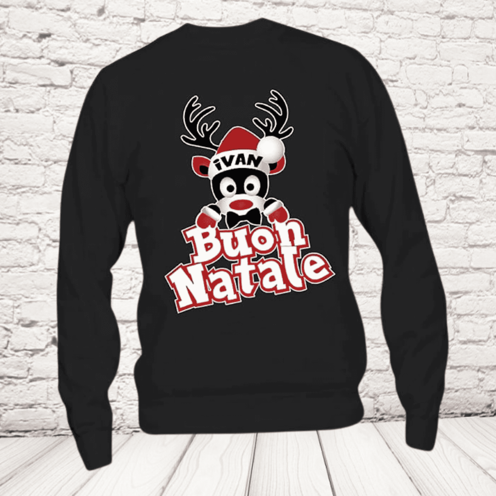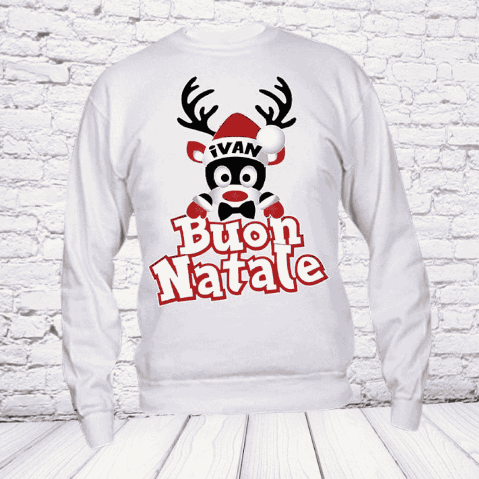 Felpa Natale Nera Bianca Rossa Caldo Cotone Morbida Maglia Natalizia per l’inverno Unisex Maglione Personalizzata con Nome Renna Regalo Originale e Divertente