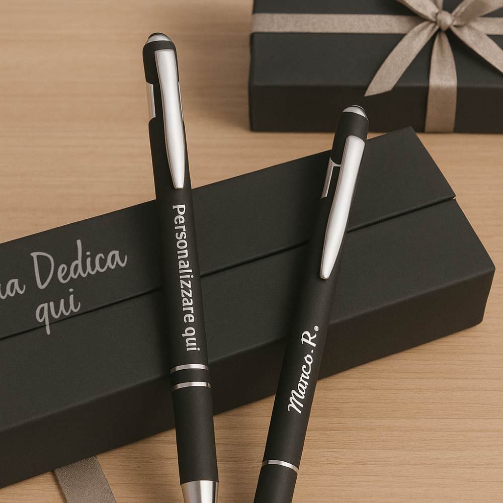 - 🎁 𝑬𝒍𝒆𝒈𝒂𝒏𝒕𝒆 𝑪𝒐𝒇𝒂𝒏𝒆𝒕𝒕𝒐 𝑹𝒆𝒈𝒂𝒍𝒐: Questa coppia di penne viene fornita in un’elegante confezione regalo nera con fiocco argentato, perfetta per un’occasione speciale o un regalo di lusso. Dotate di punta Touch compatibile con tutti i cellulari e tablet.