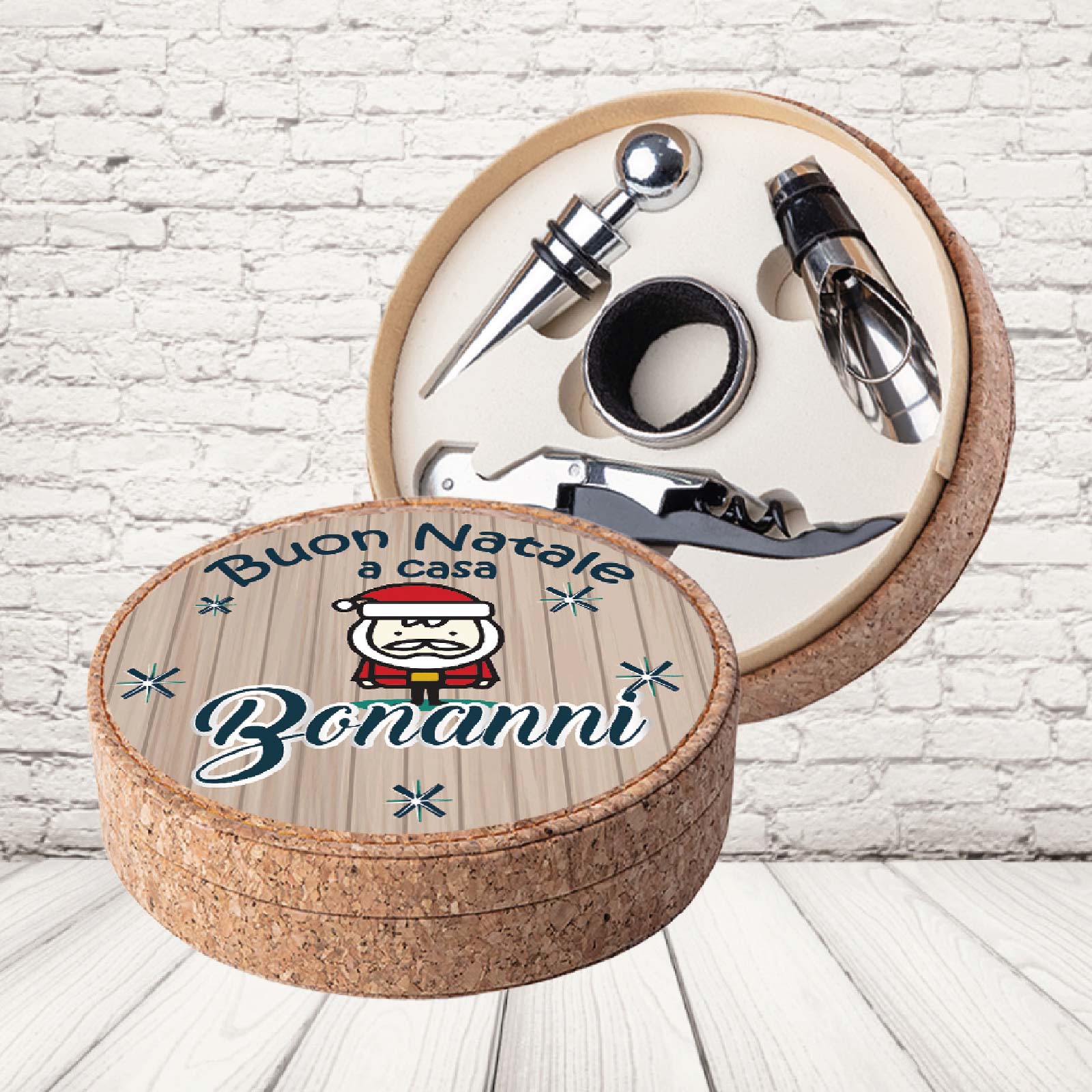 Kit accessori vino personalizzato, Celebra il Natale con stile! Set sommelier con grafica natalizia personalizzato, ideale per famiglie e amanti del buon vino.