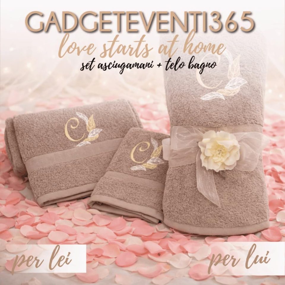 • SET COMPLETO DA BAGNO: Include 3 pezzi coordinati – 1 telo bagno (100×150 cm), 1 asciugamano viso e 1 asciugamano bidet, tutti personalizzati con ricamo iniziali e tema “Love”