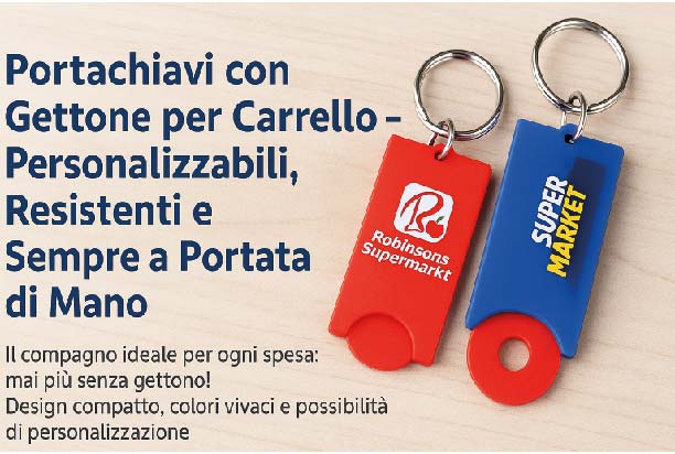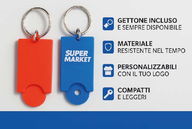 - DESIGN PERSONALIZZATO: Kit portachiavi con disco estraibile per carrello della spesa, personalizzabile con logo aziendale o scritte pubblicitarie