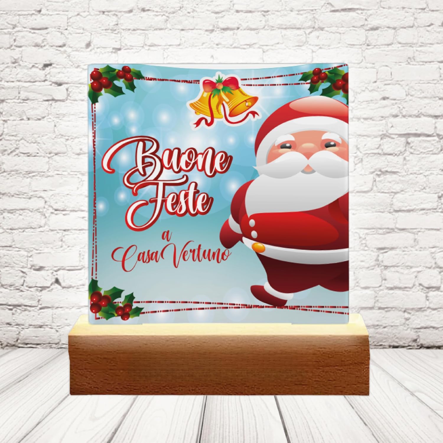 Crea un’atmosfera festiva unica con la nostra LAMPADA LED NATALIZIA PERSONALIZZABILE. Aggiungi un tocco personale alla tua decorazione natalizia con questa elegante lampada da tavolo in plexiglass, perfetta per illuminare il tuo spazio con un caldo bagliore natalizio.