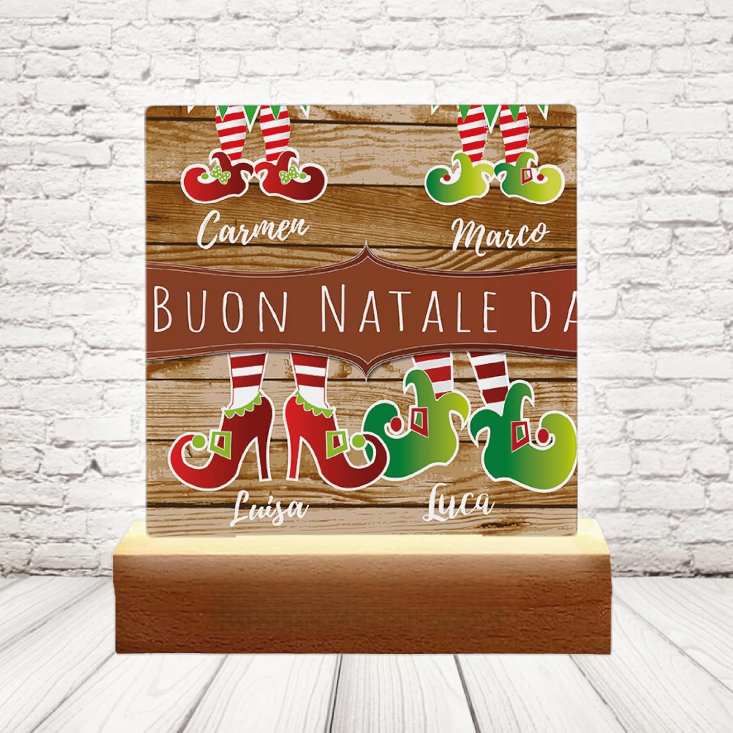 Lampada Led in Plexiglass da Tavolo Scrivania Personalizzata con Nome Famiglia, Idea Regalo Per Natale Natalizia ”ELF FAMILY PIEDINI”