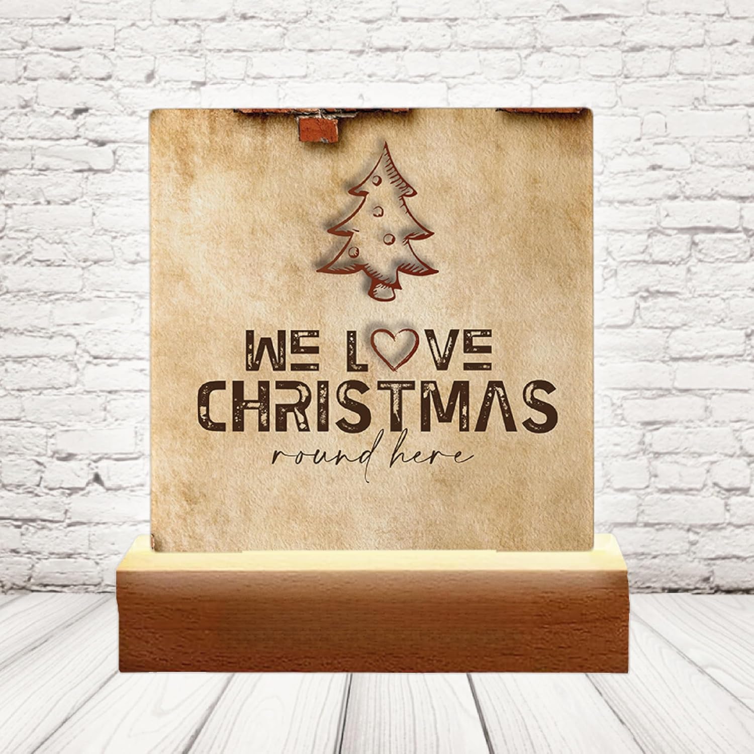 Lampada Led in Plexiglass da Tavolo Scrivania Personalizzata con Nome Famiglia, Idea Regalo Per Natale Natalizia ”LOVE CHRISTMAS TREE”