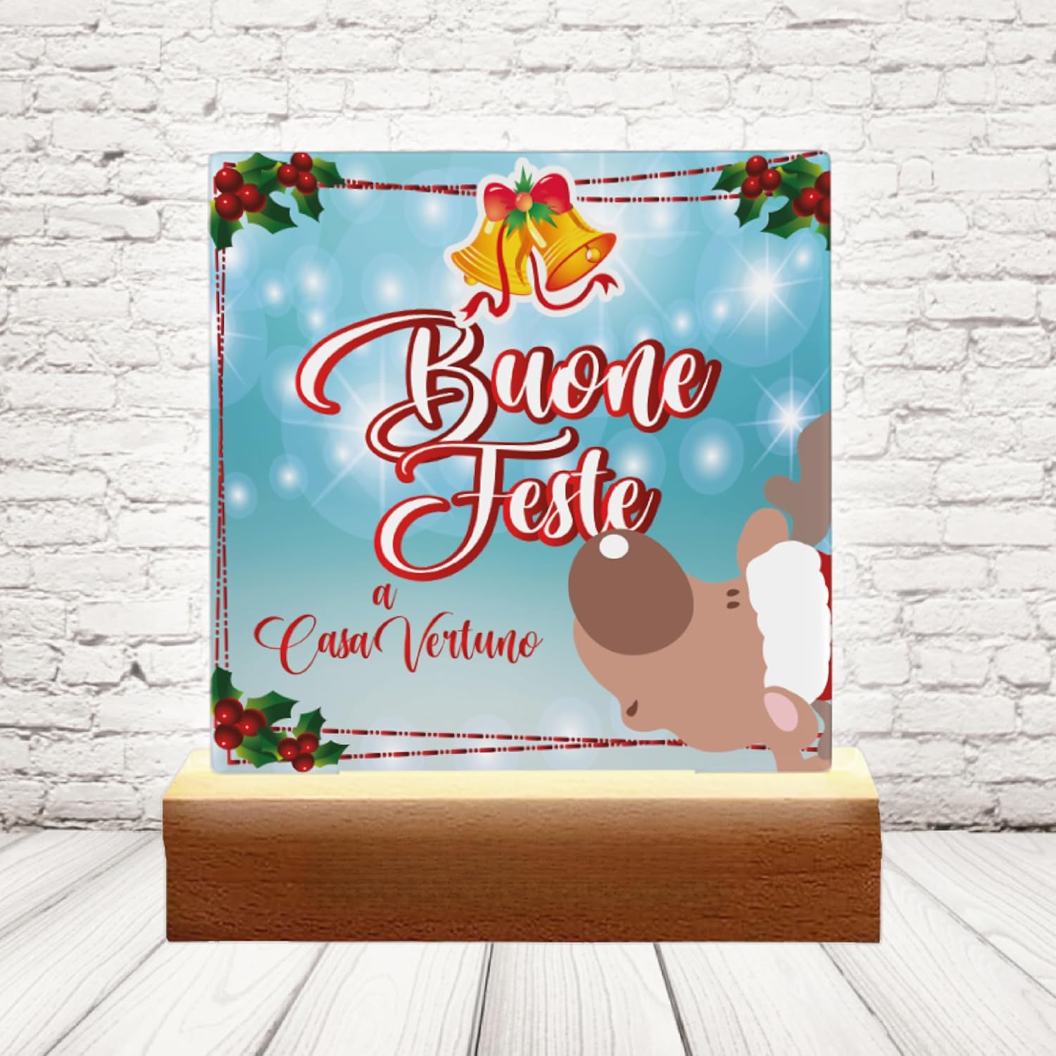 Crea un’atmosfera festiva unica con la nostra LAMPADA LED NATALIZIA PERSONALIZZABILE. Aggiungi un tocco personale alla tua decorazione natalizia con questa elegante lampada da tavolo in plexiglass, perfetta per illuminare il tuo spazio con un caldo bagliore natalizio.
