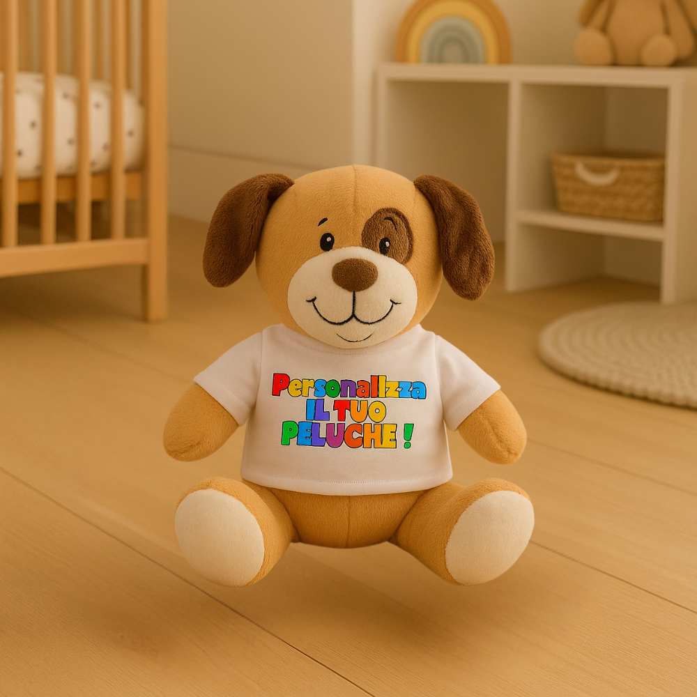 Morbido Peluche Cagnolino Personalizzato con Foto e testo – Pupazzo Cane con t-shirt bianca personalizzabile – Idea Regalo per San Valentino Natale Festa della Mamma o Papà Compleanno