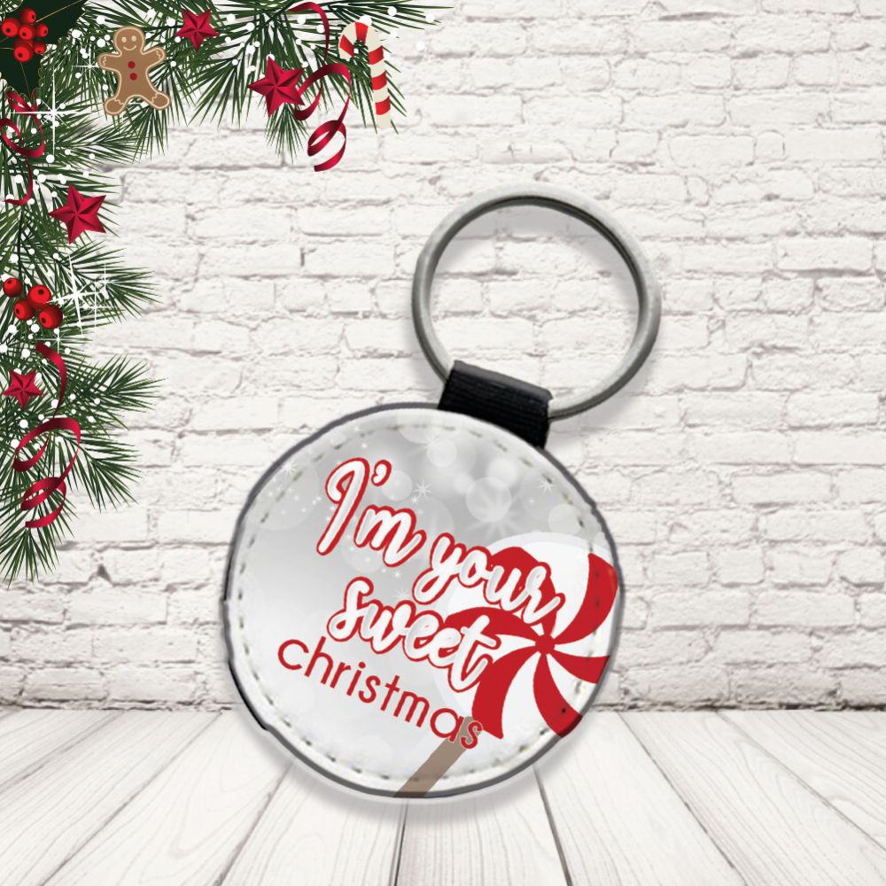 Portachiavi in Eco Pelle Simpatico Natalizio Divertente per Natale Decorativo Chiavi Casa Idea Regalo Originale Personalizzabile con nomi Famiglia ”SWEET CHRISTMAS”
