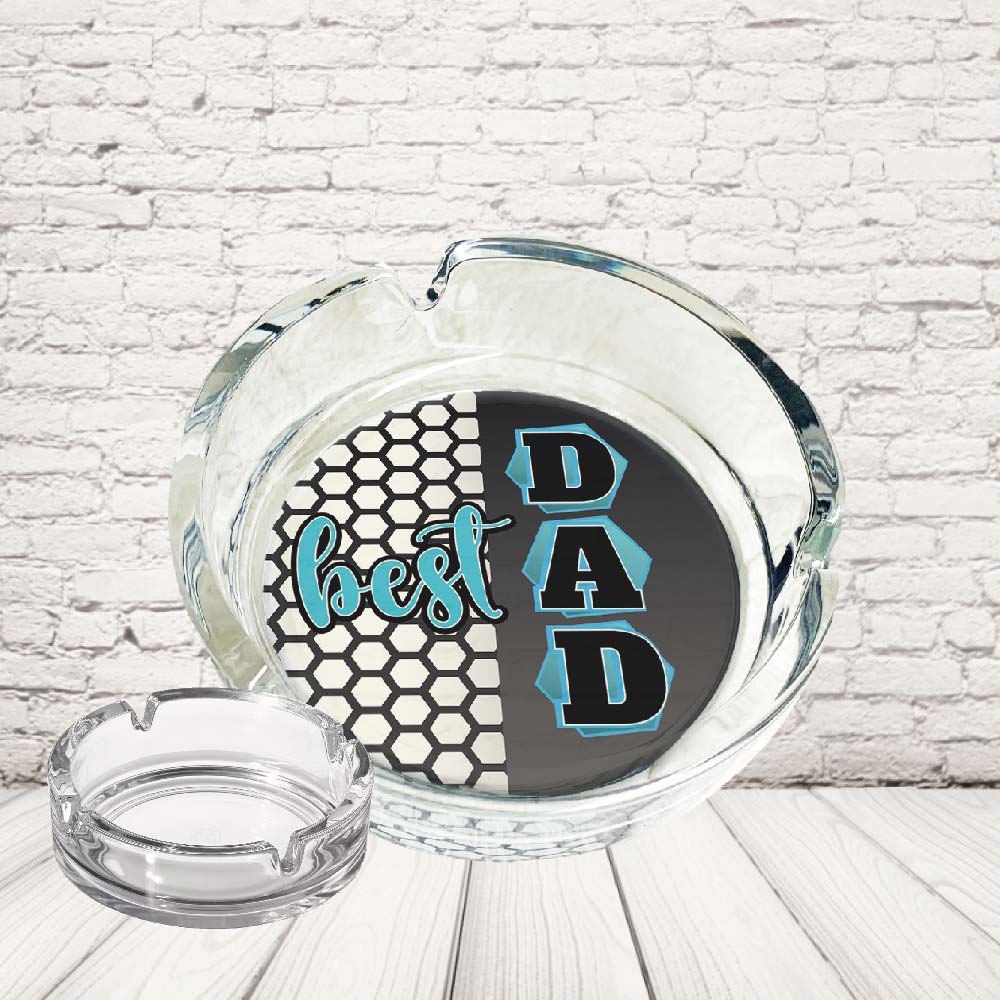 Posacenere da Tavolo in Vetro trasparente Per Interno ed Esterno Personalizzato con Nome “BEST DAD BLUE” Porta Cenere per Sigarette Ideale per Festa del Papà Uomo Marito Fidanzato