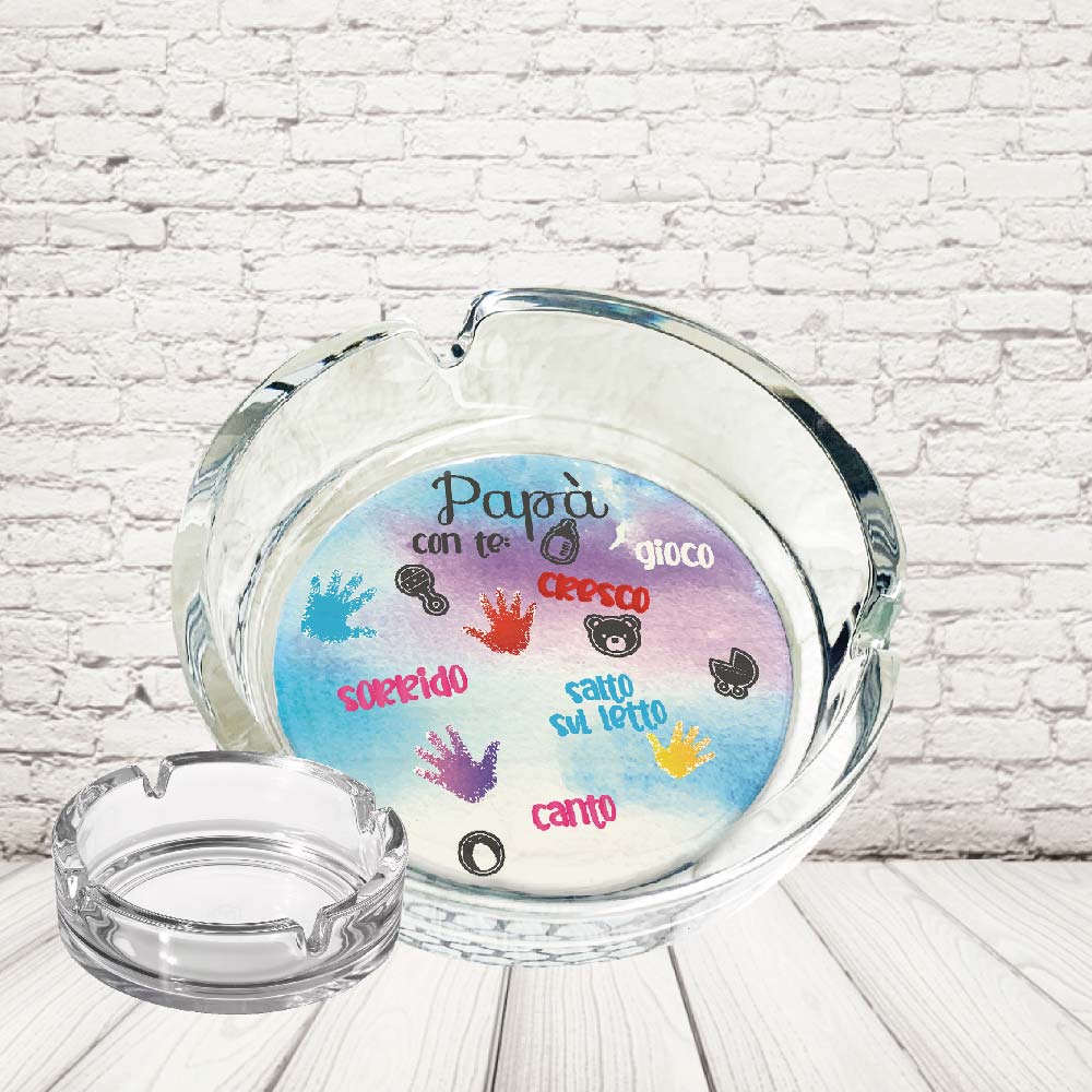 • DESIGN PERSONALIZZATO: Posacenere in vetro trasparente con decorazione e nome personalizzabile, perfetto come regalo per la Festa del Papà
