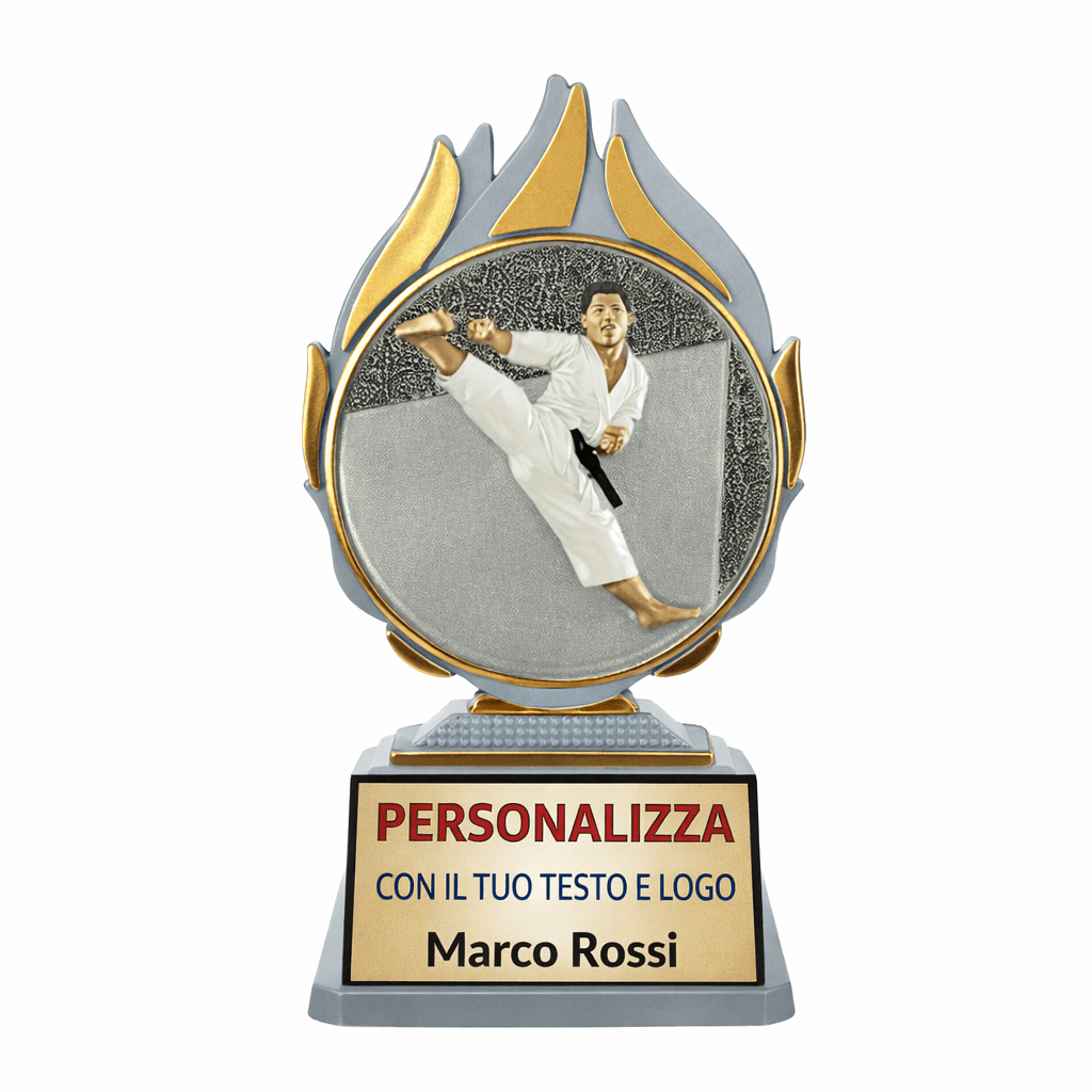 🏆 Trofeo Karate 14 cm Argento Personalizzabile con Targhetta