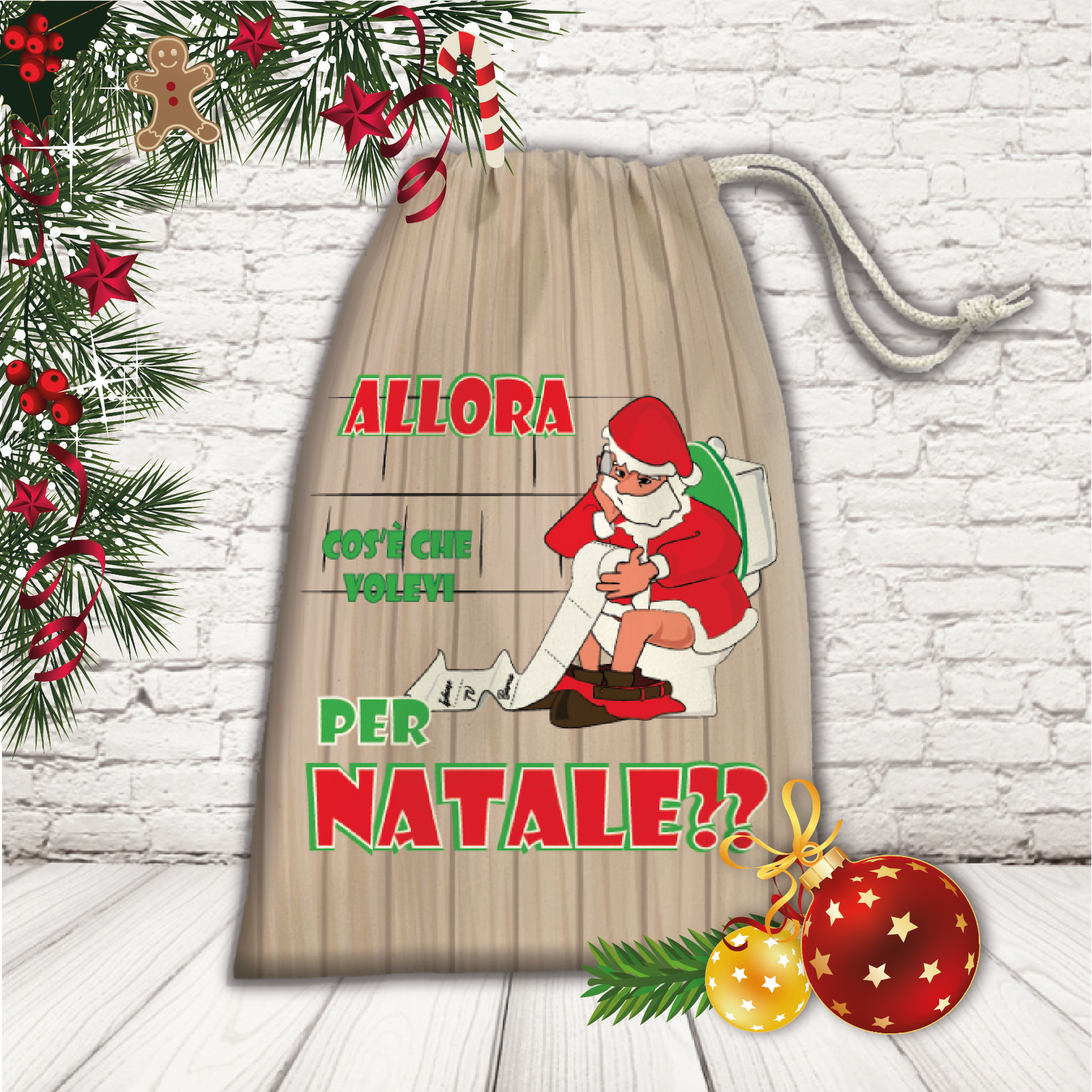 Sacco Porta Regali Natalizio Divertente per Natale Decorativo Chiavi Casa Idea Regalo Originale Personalizzabile con nomi Famiglia ”COS’E’ CHE VOLEVI?”